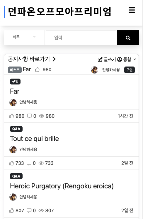 - 게시글을 검색할때 대소문자를 무시하지 않는 오류 -> lower()를 사용하여 해결 완료