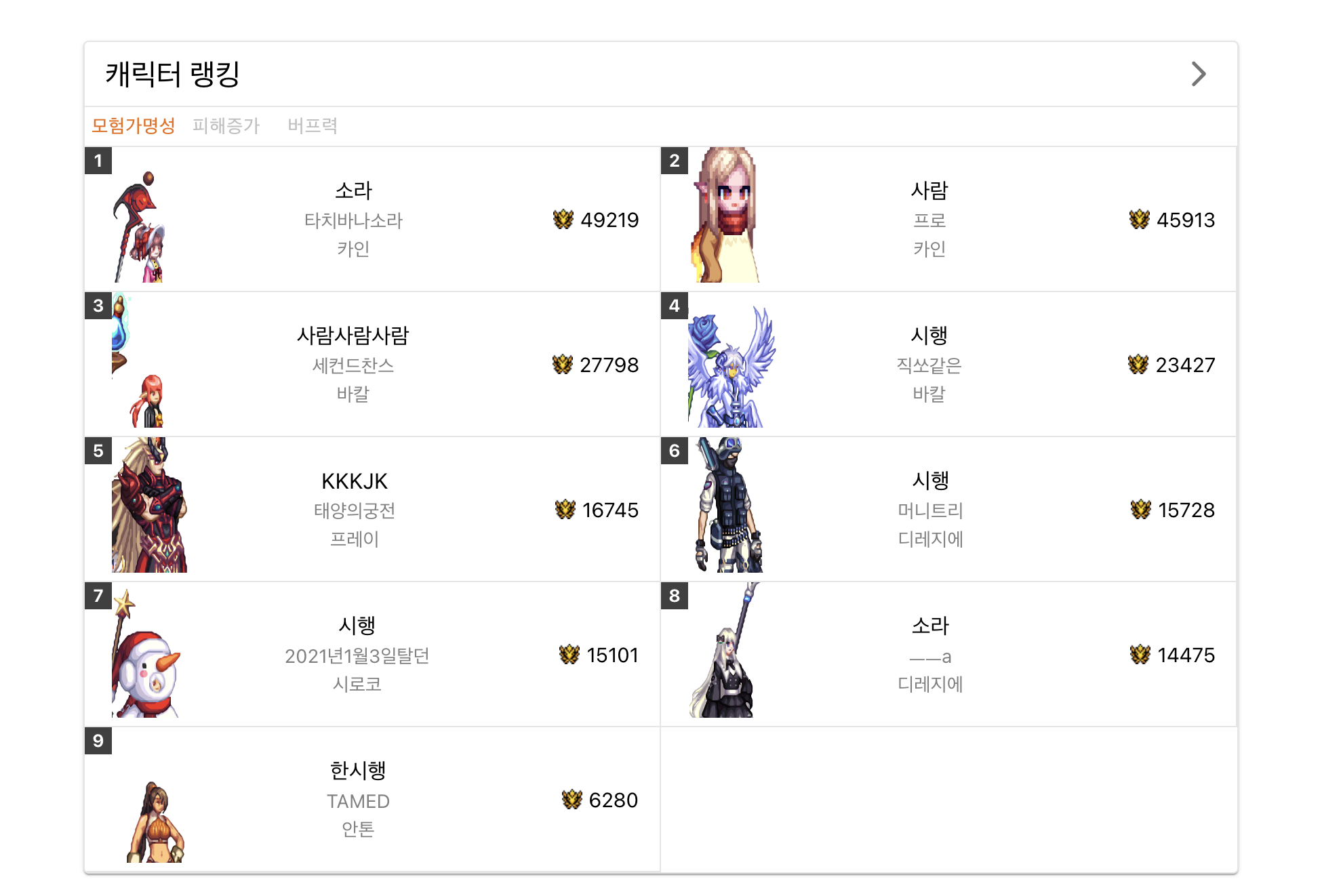 - 캐릭터 랭킹 조회 (모험단, 개인 캐릭) ⭕️