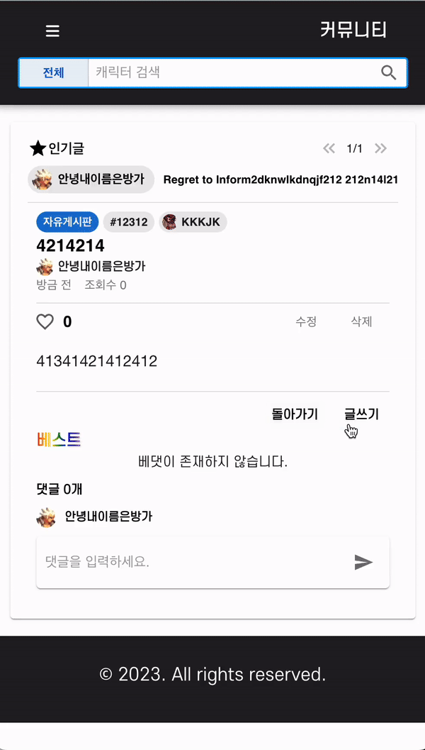 - 게시글에 캐릭터 링크 후 클릭 시 해당 캐릭터가 등록된 게시글 혹은 캐릭터 정보 상세보기 조회 가능 ⭕️