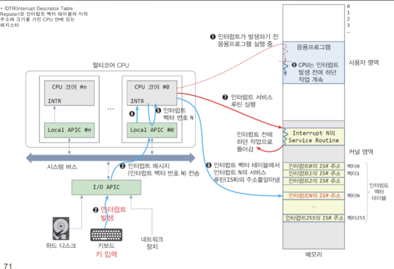 - 입출력 장치들이 비동기적 사건을 CPU에게 알리는 행위