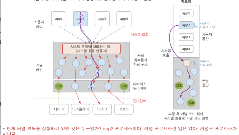 커널은 프로세스도 스레드도 아닌 단순 함수의 집합이다.
