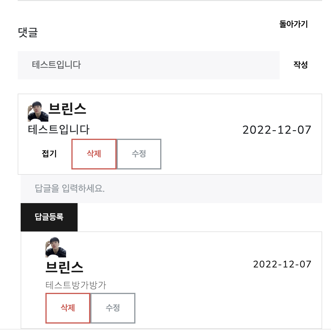 | 스프링부트 + 타임리프로 동기식 댓글수정 기능 구현하기 (0) | 2022.12.13 |