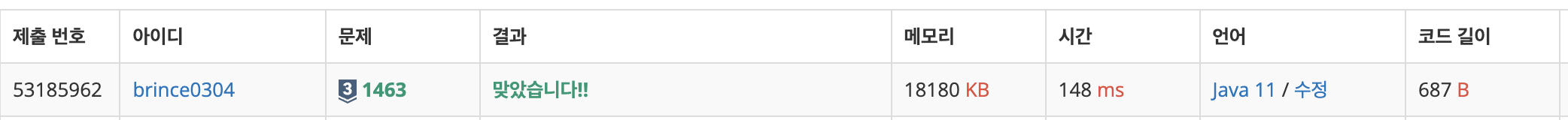 따라서 단순히 저 세개의 경우의 수 중 가장 큰 값을 골라서 배열에 넣어주면 된다.